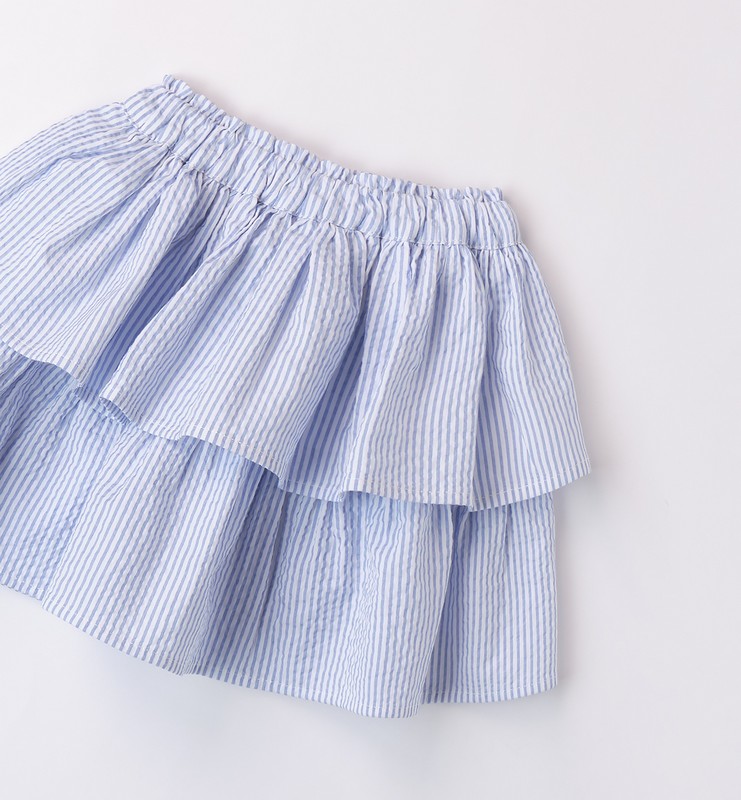 Girls blue and white pinstripe, seersucker RaRa skirt by iDO Baby, made from soft and comfortable cotton jersey blend. Designed with a comfortable elasticated waist.