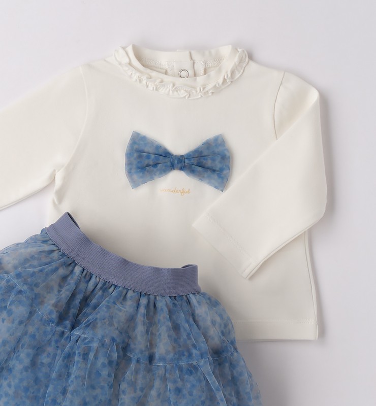 Long sleeved top with pretty tulle bow on the front in blue with hearts & flowers comes with gorgeous tutu to match!