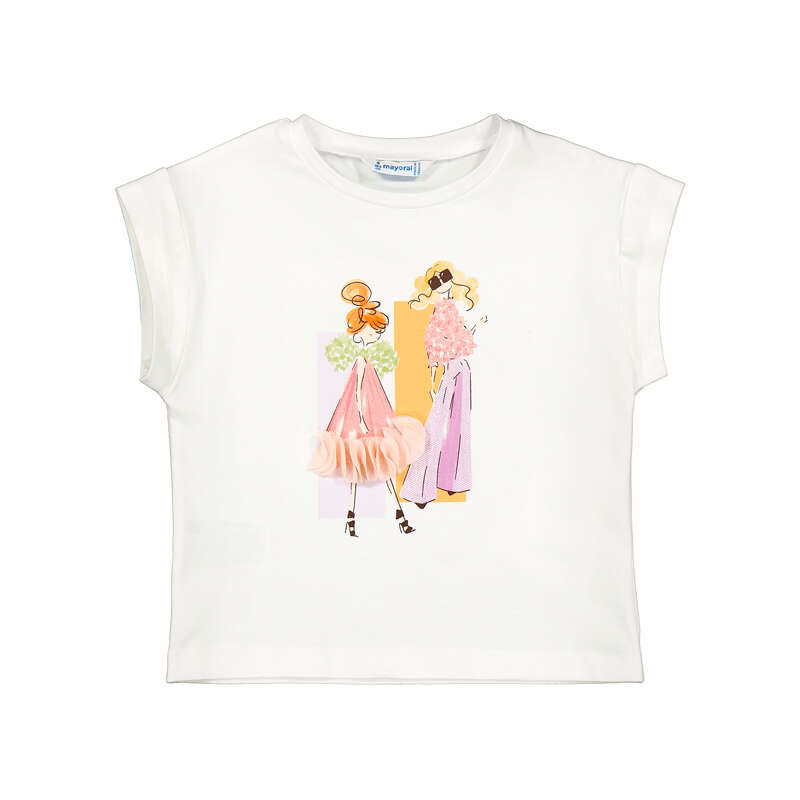 Mayoral girls print t-shirt, short sleeve white t-shirt with fun girl print on the front, easy to wear & perfect for summer!